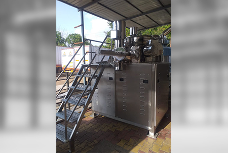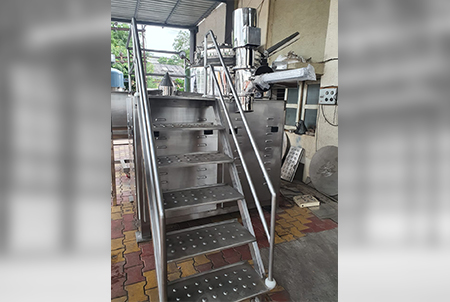 Mounting : A hard M.S. channel has been used to keep the drive assembly at the bottom. Stainless steel staircase and railings are provided for the platform with a bowl mounted on the top. Half of the platform has been covered by S.S. and dimpled Plates.